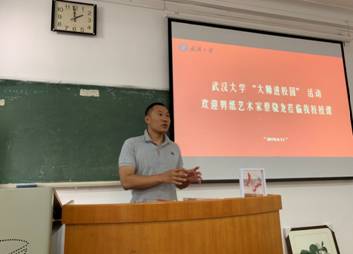 2019年9月11日,湖北省工艺美术研究所剪纸研究室主任、中国工艺美术大师传承创新基地(武汉大学)合作大师之一的剪纸艺术家蔡骁龙,以剪纸艺术及其创新设计为主要内容应邀为我院设计系2019级硕士研究生献上了一堂精彩的课程。
