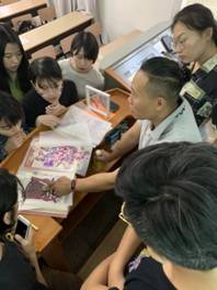 蔡老师在创作中牢记习近平总书记的话——“创新的实质效果是优胜劣汰,破旧立新”,其剪纸作品体现了创新性及发展性。作为一名手艺人,蔡老师深知艺术理论艺术修养是多么的重要,他特意提到,“如果没有扎实的理论,是做不出好东西的”,因此几十年来在打磨自己手艺的同时,还不断丰富着自己的理论知识。同学们因此深受感染和启发。