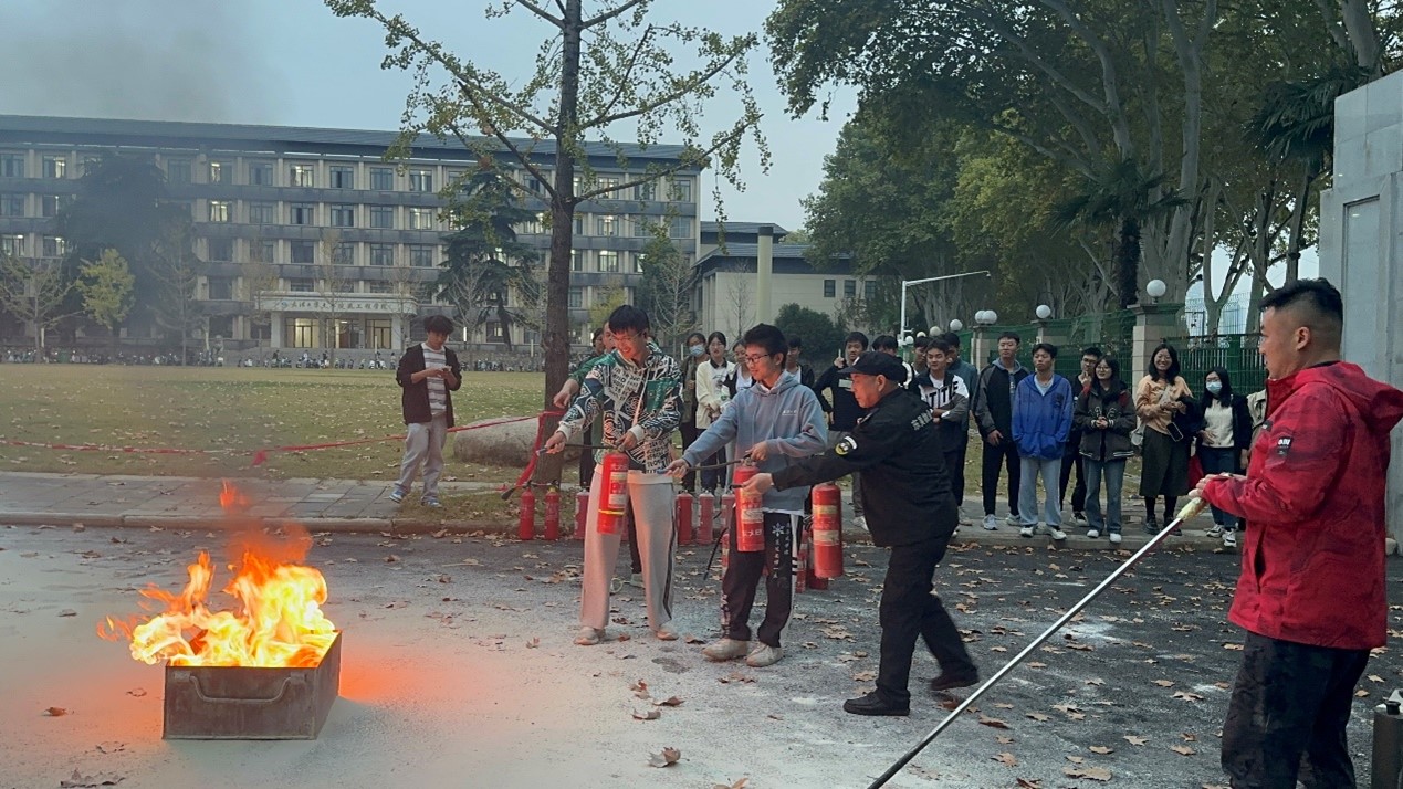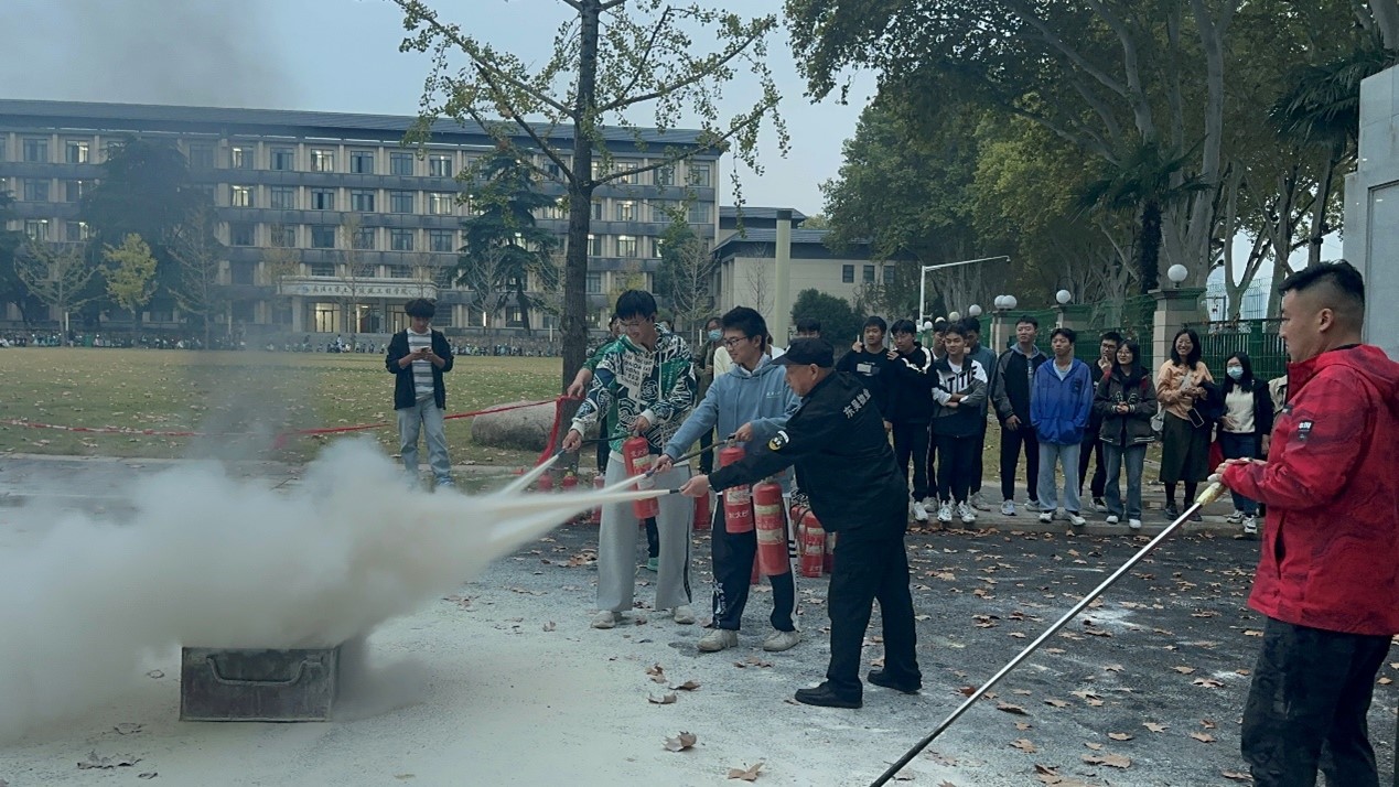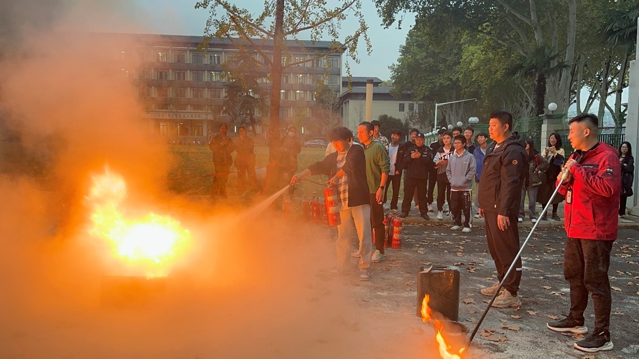 讲座结束后,老师和同学们来到主教广场进行应急演练活动。在任超老师的示范下,本科生和研究生的学生代表自由分组,踊跃上前演练试用,一名学生表示:“灭火器随处可见,但是上手操作还是第一次,有了操作的经历,以后遇到紧急情况,我觉得我不会手忙脚乱了!”