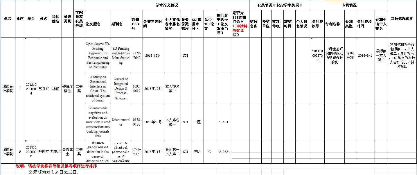 2016年城市设计学院研究生学术创新奖推荐人选公示