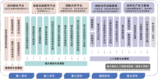此外,武汉大学正全面普及“数智教育”,将数智人才培养覆盖到所有学科专业及各个学历层次,在推动数据科学知识交叉学习的基础上,注重数字技能的融通实训,着力培养面向未来的复合型数智人才。武汉大学的城乡规划学科本就在全国范围内具备显著的数字化与信息化优势,在当前新形势下面向“人工智能+”行动及武汉大学“数智教育”带来的重大机遇,融入大数据与人工智能等新技术,以实现从“数字化”到“数智化”的重大转变。