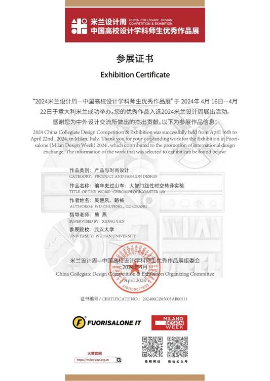 图:入选中国高校设计学科师生优秀作品展的参展证书