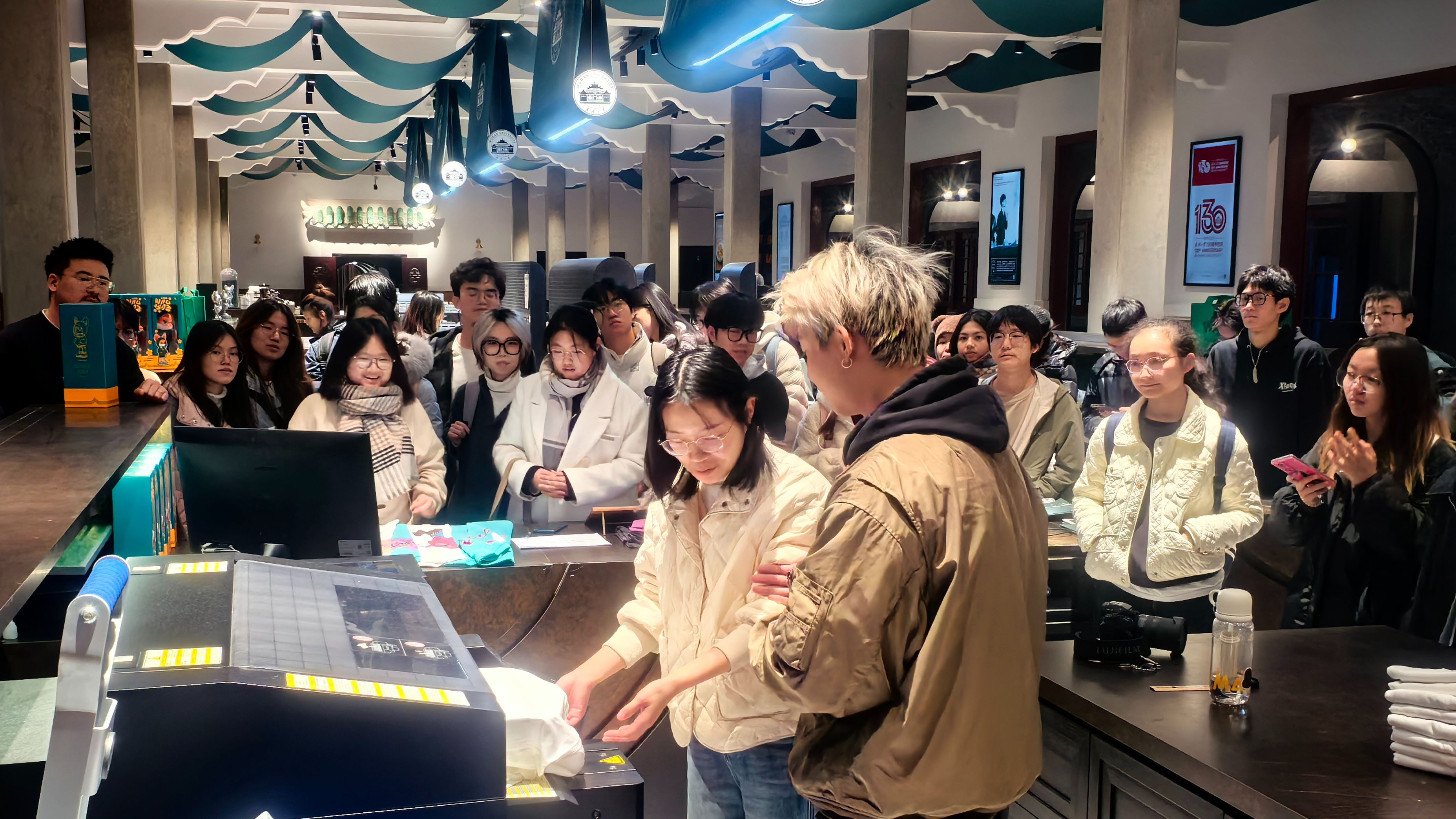 最后,在各位分享专家的引领下,同学们参观了“武汉大学学生俱乐部”改造后的“WHU1893文化空间”,进一步零距离了解了优秀早期武汉大学建筑的历史和活化的过程。在文创产品实操区,刘帅亲自对校园文创的相关工艺进行了介绍,并现场制作示范,辅助同学们亲手将自己设计的艺术作品制作为文创产品。