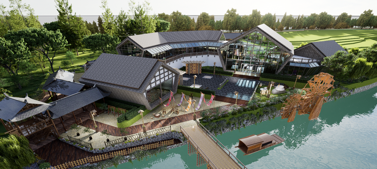 设计方案通过对村落肌理与张恨水代表作品的挖掘与探讨,选择了“蝴蝶”这一意象作为建筑的母题,既在一定程度上体现了黄岭村如蝶一般的美好自然,又暗示张恨水是鸳鸯蝴蝶派中颇有才情的作者,笔风细腻生动。