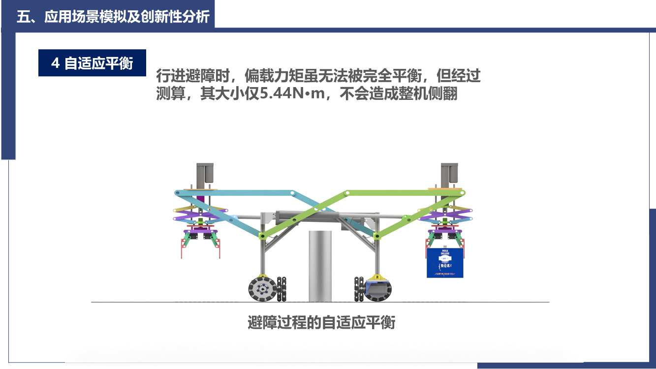 我们的作品“智能搬运避让起重机器人”旨在提升仓储搬运效率,同时确保安全性和智能化。随着电商发展,仓储物流需求激增。智能物流机器人逐渐成为搬运环节的关键,提高搬运效率,减轻人力负担。传统人工和现有的物流机器人各有局限:人工搬运成本高、易出错;现有机器人多适用单一任务,难以适应复杂环境。针对现状,我们的机器人通过路径规划、障碍避让和高精度识别等功能,克服传统搬运方式的不足。机械结构主要分为四大模块:行进模块、识别抓取模块、转移模块和控制模块,各模块功能细化确保智能搬运的实现。我们设计的机器人框架长度600mm,框架高度446mm。尺寸设计在搬运效率和结构稳定性之间取得平衡。通过动画演示,我们可以更直观地展示机器人的搬运操作过程,体现各模块的协同作用。