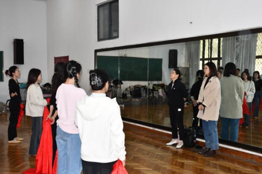 城市设计学院党委副书记李琦老师、辅导员叶婧杰老师观摩指导排练