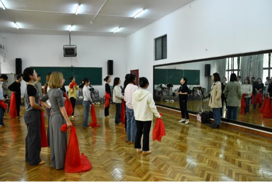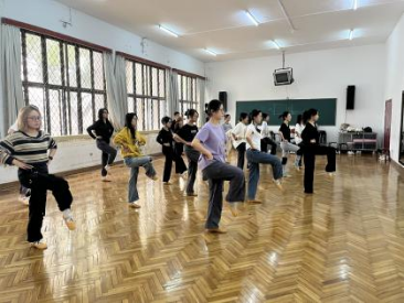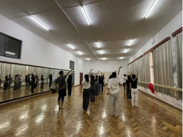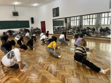 这一个月的时间里,形体房见证了同学们的欢笑和汗水。每一次的排练,都带来满满的收获。越来越熟练的课前热身,不断磨合的队形变换,少不了每一位同学的认真付出,也少不了肖同学的精心编排,学院老师的温暖保障。