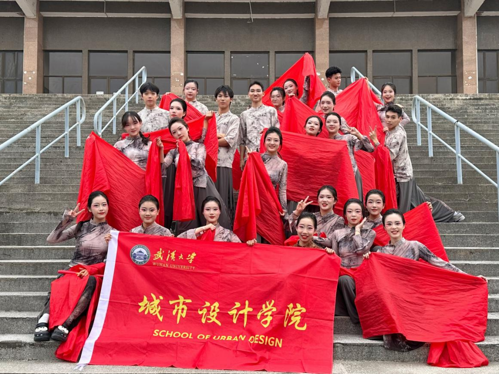 此次集体舞大赛中,24位城市设计学院研究生携手共庆祖国华诞,演绎红旗之下的故事,续写新时代红色精神的华章。在一个月的努力训练中,集体舞队员们互相鼓励,携手进步,从相识到相知,共赴一场关于舞蹈与团队精神的旅程。
