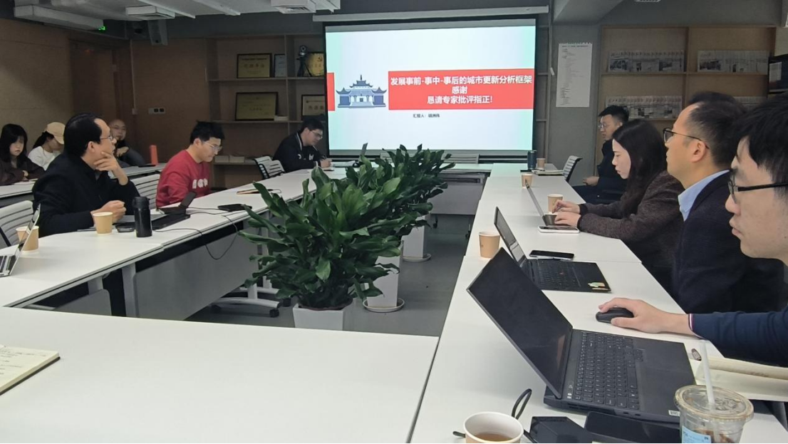 来自城乡规划专业的2020级博士研究生胡洲伟同学,以“发展事前-事中-事后的城市更新分析框架”为题,详细阐述了其研究的核心内容和创新点。他的研究聚焦于城市更新过程中的动态分析,提出了一个分析框架,旨在为城市更新提供更为科学和系统的决策支持。胡博士生的汇报深入浅出,逻辑清晰。汇报结束后,到场的专家们对胡洲伟同学的研究提出了宝贵的意见和建议。他们从不同角度对研究框架进行了深入的分析和讨论,为胡博士生的研究提供了新的视角和思考方向。