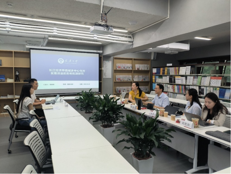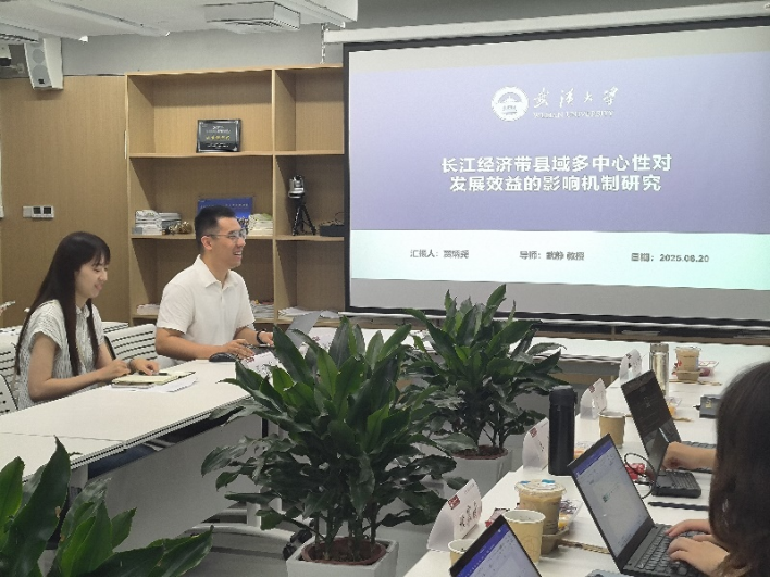 贾炳尧博士的汇报聚焦于长江经济带县域多中心性对发展效益的影响机制。他从长江经济带的核心使命和县域统筹发展的战略背景出发,深入剖析了县域发展面临的挑战,并将其转化为具有科学价值的研究问题。