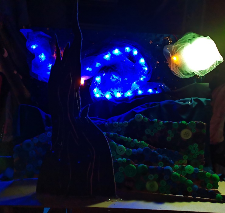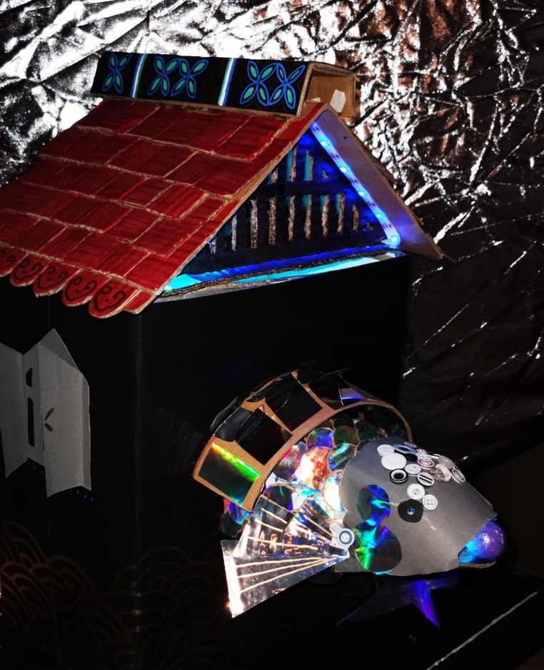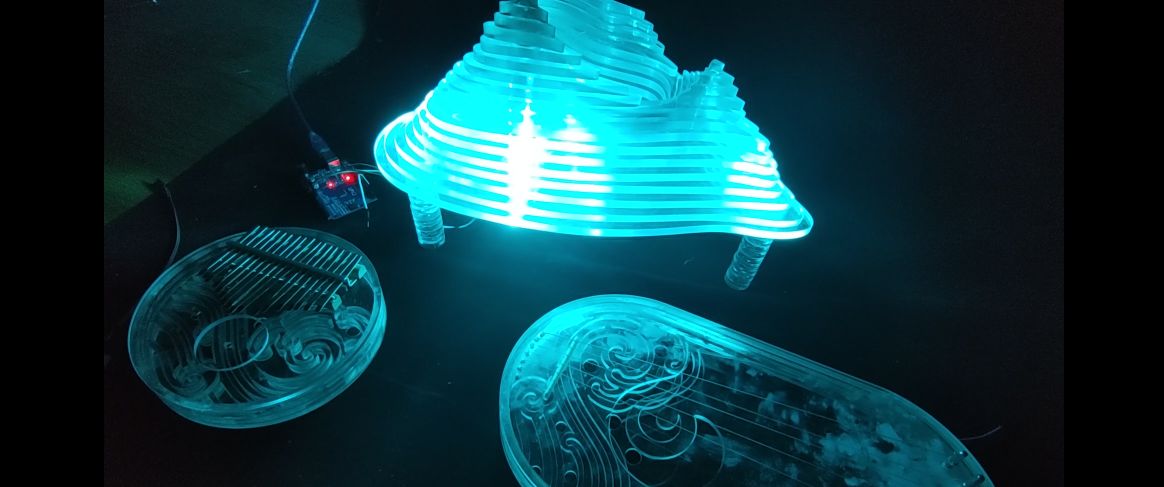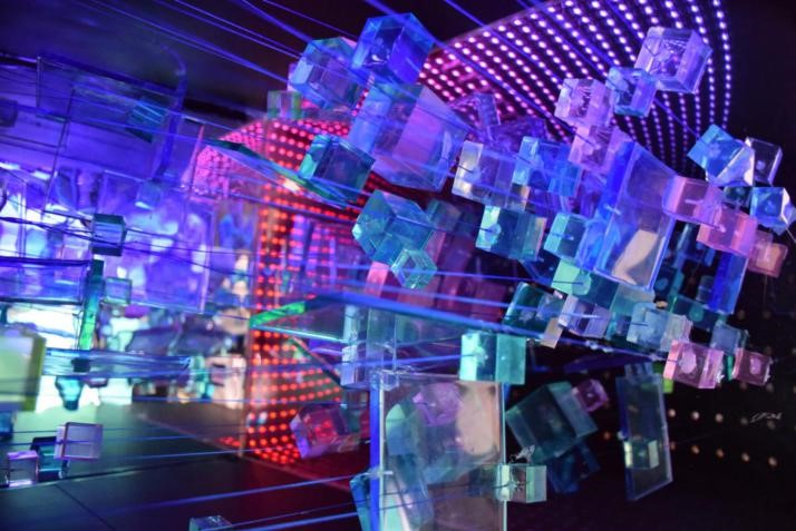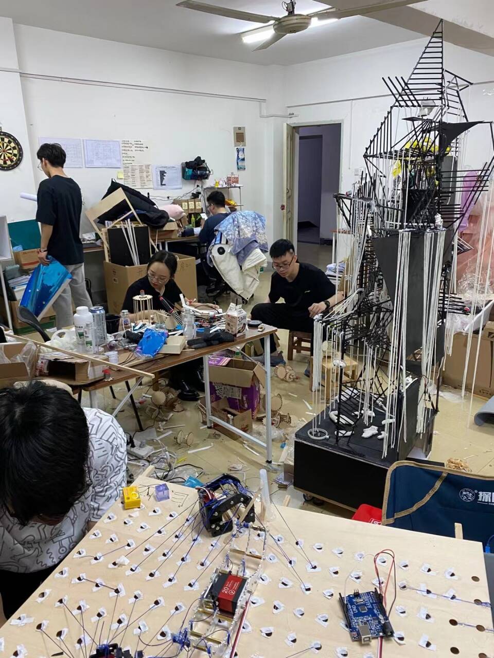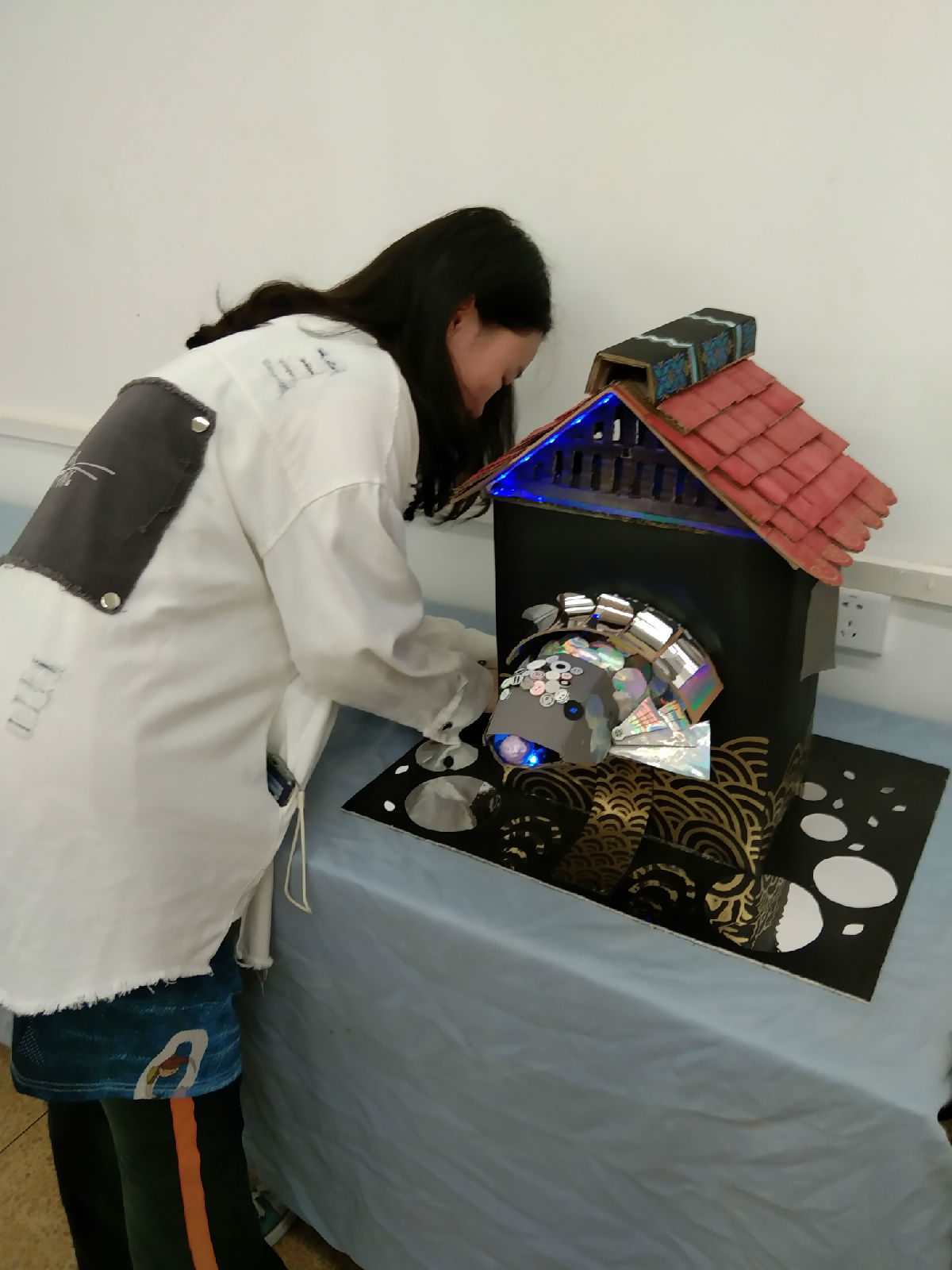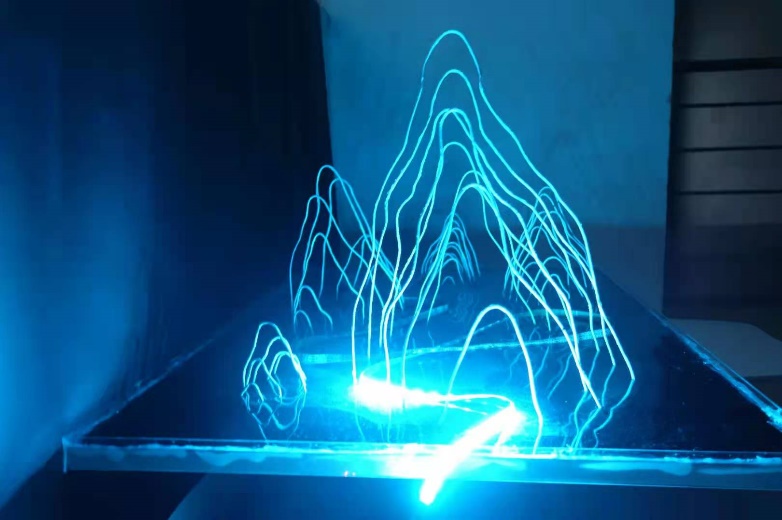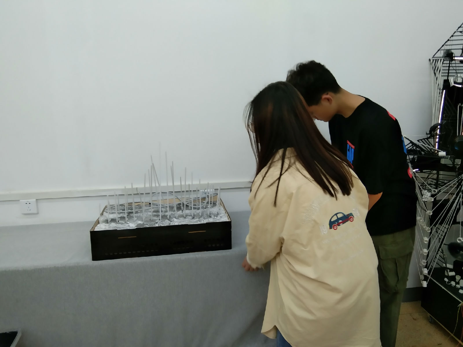 具体要求是:将三维原理纳入空间语境,展开具有某种特定观念的空间造型与材料组织,以实现特定语义表达的光色互构。其中,Arduino开源创客作为本次课程实施的技术支撑,旨在使20级设计系学生透过技术与媒介,创造性地拓展了三维原理的视觉呈现手段,使新的、基于媒介技术的艺术形态,绽放出空间艺术与数码技术碰撞的炫目光彩,实现了艺术、设计、技术的新的统一,彰显了科技体验灵动于艺术的独特感受。